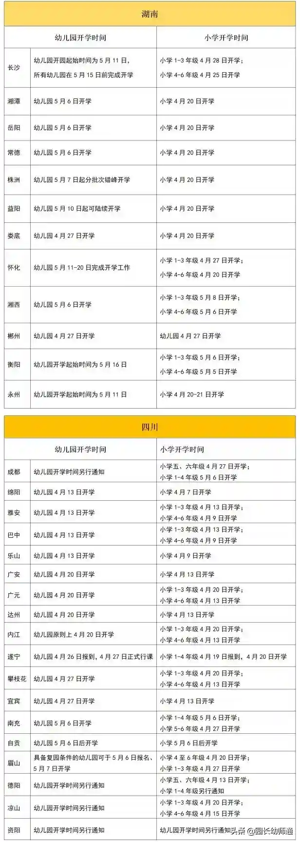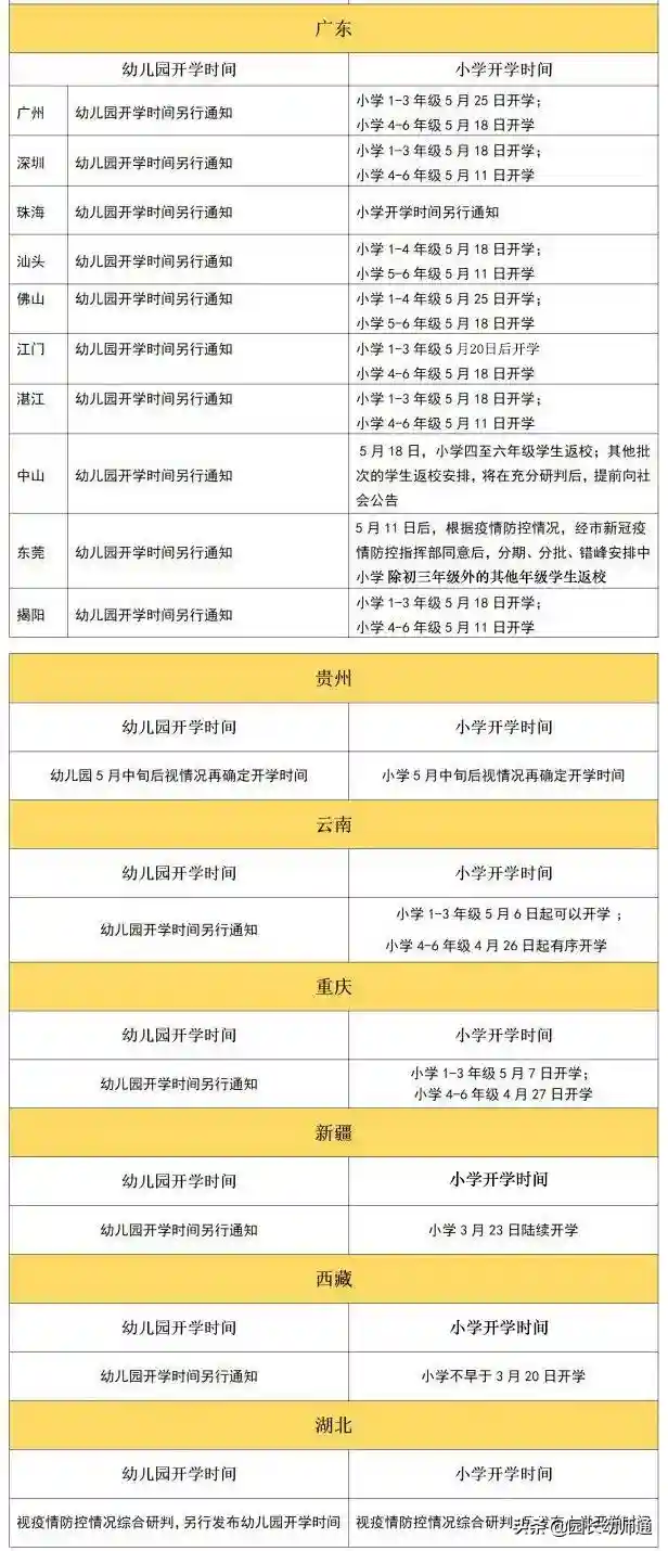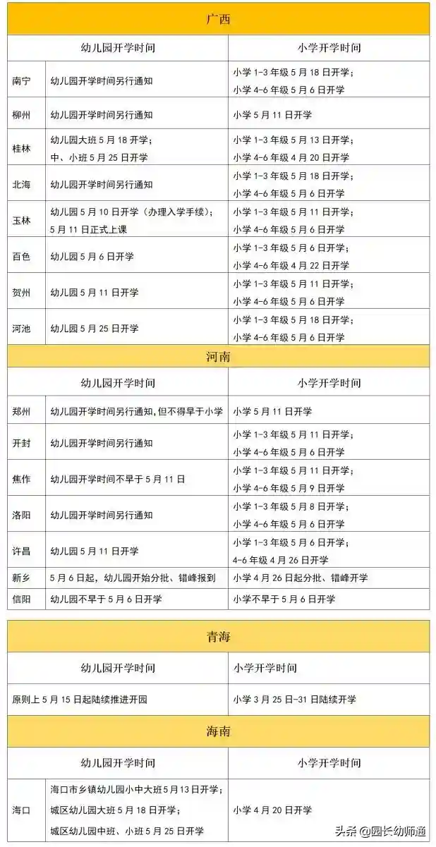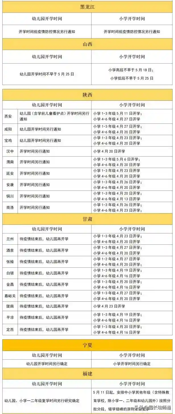 1.已经开学及明确幼儿园开学的省份(10个)