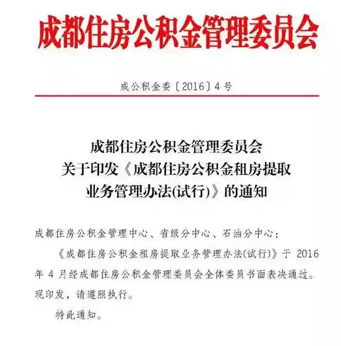 文件:《成都住房公积金租房提取业务管理办法》(试行)。