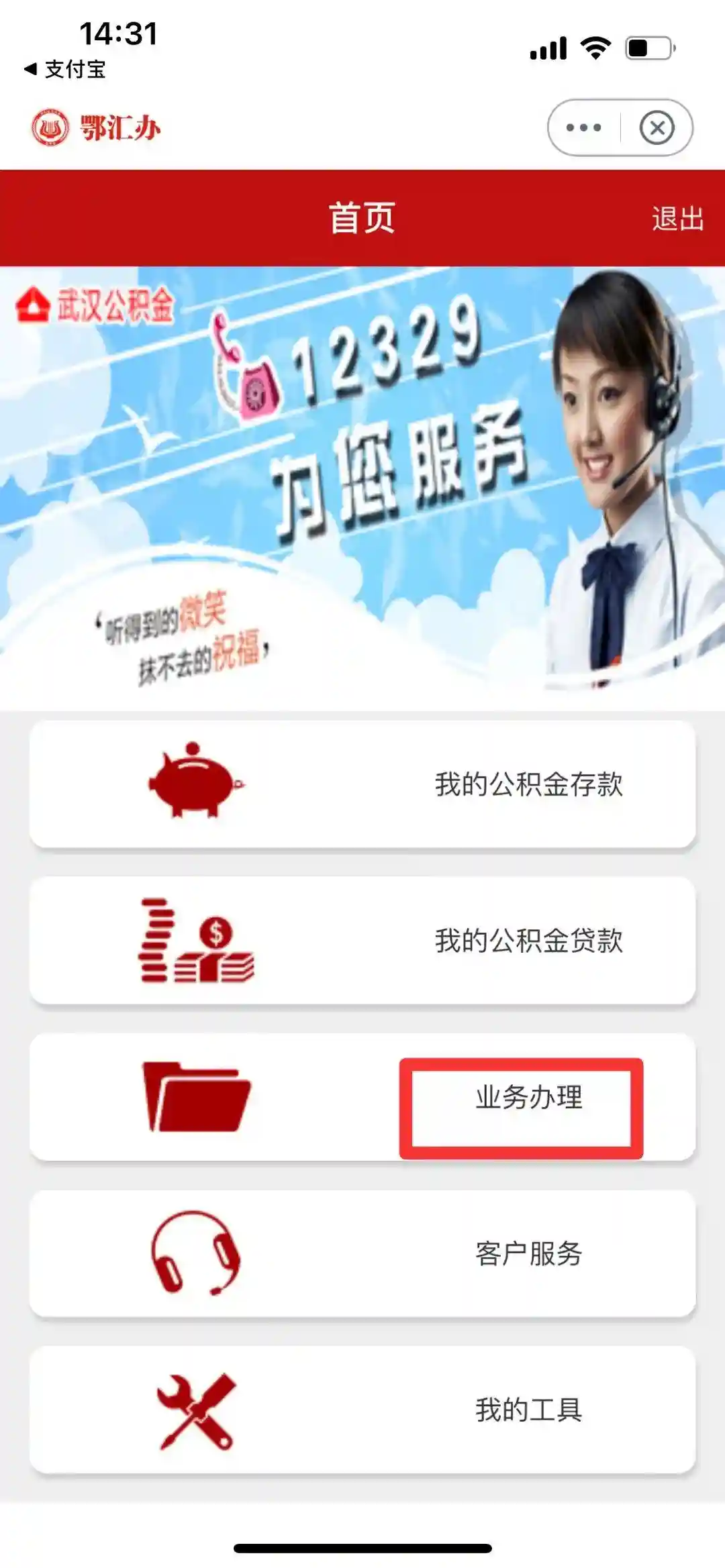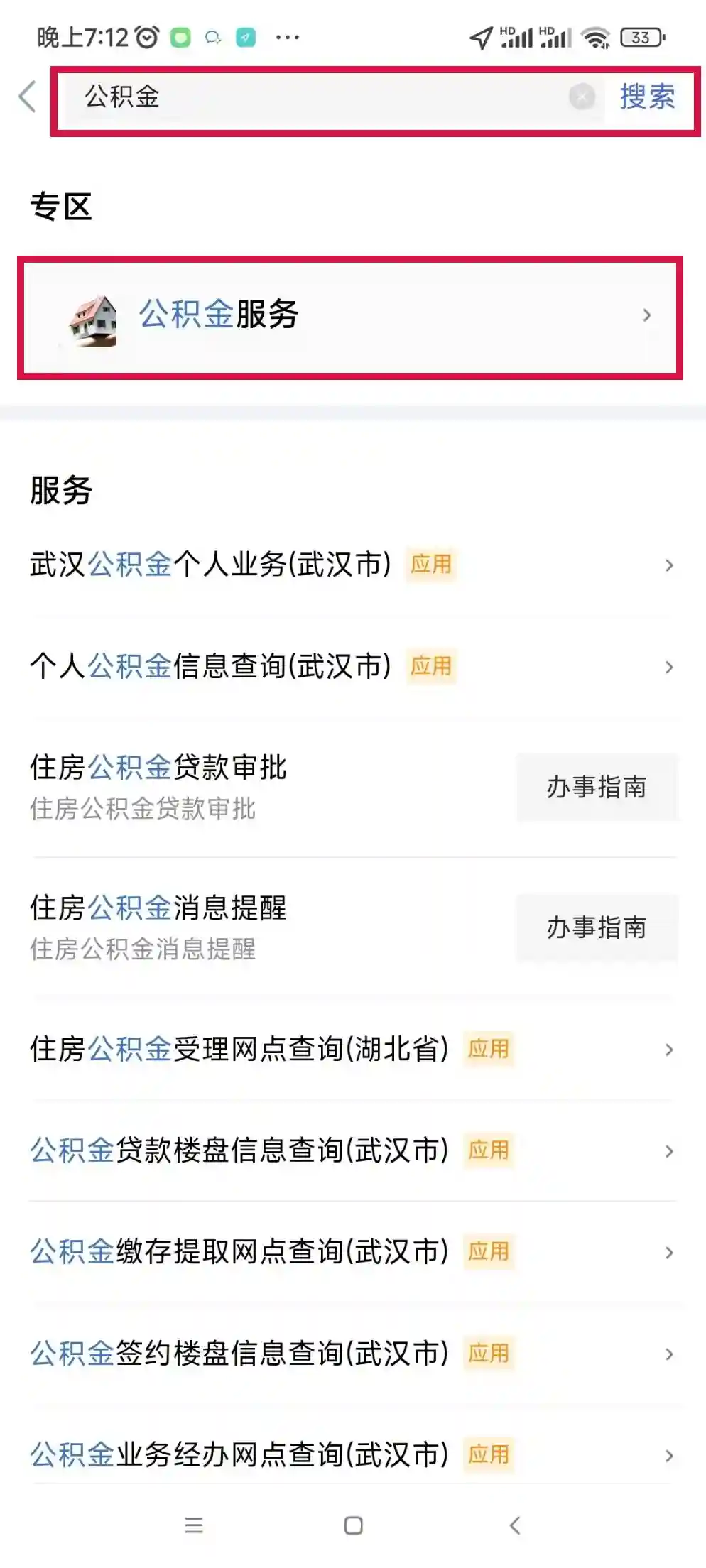 1.打开鄂汇办APP,搜索“公积金”,找到“公积金服务”