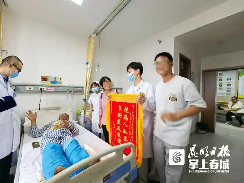 “伤口不疼了,前几天就下地行走。手术后,马上就通过中医的方式帮助我快速恢复,这样中西医结合的治疗方式太好了。”朱先生躺在病床上,腹部放着隔物灸。看到丁世霖和医护人员来查房,立即让儿子拿出制作好的锦旗,表达自己的感激之情。
