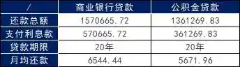 比如贷款100万,分20年还,按照等额本息的方式来计算利息,商业贷款要比公积金贷款多还接近21万。