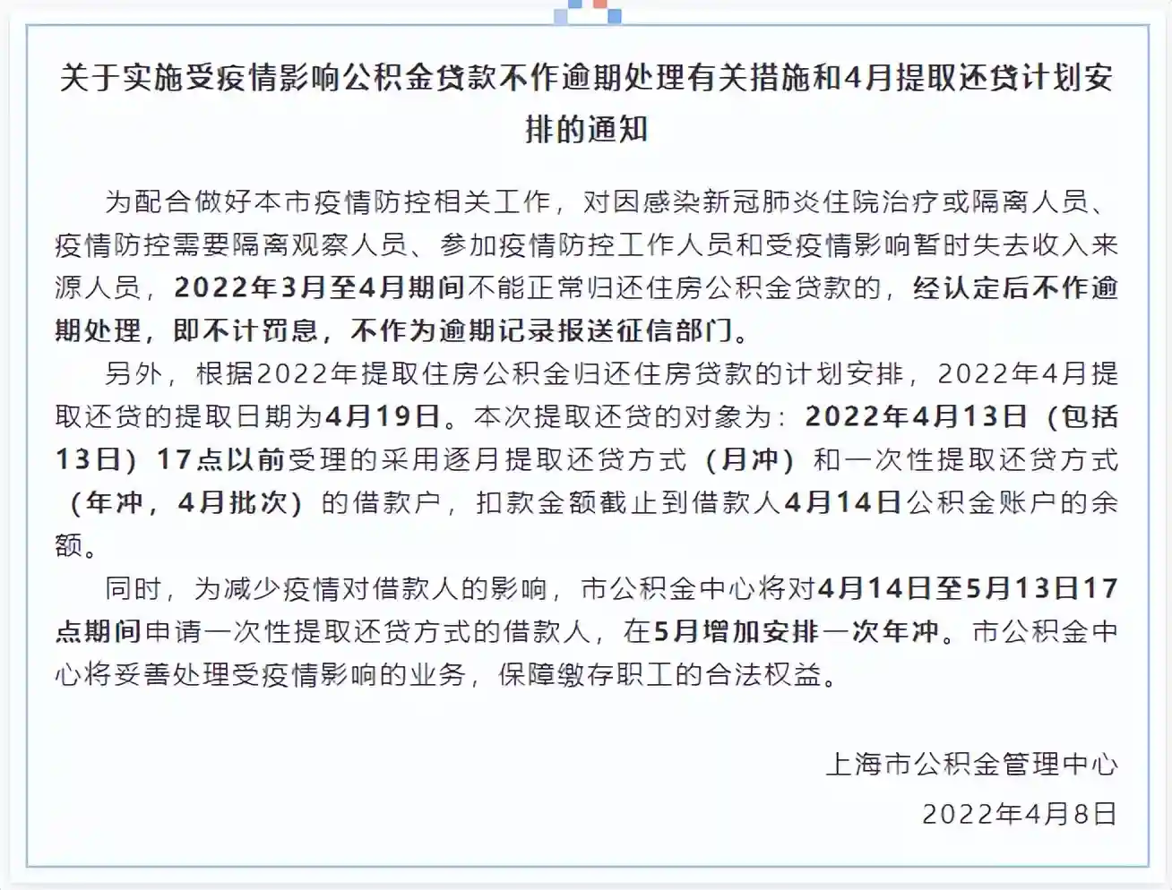 不过这是针对银行的商业贷款,对于公积金贷款能否推迟延期,上海公积金管理中心4月8日晚上也发布通知,受到疫情影响的四类人员: