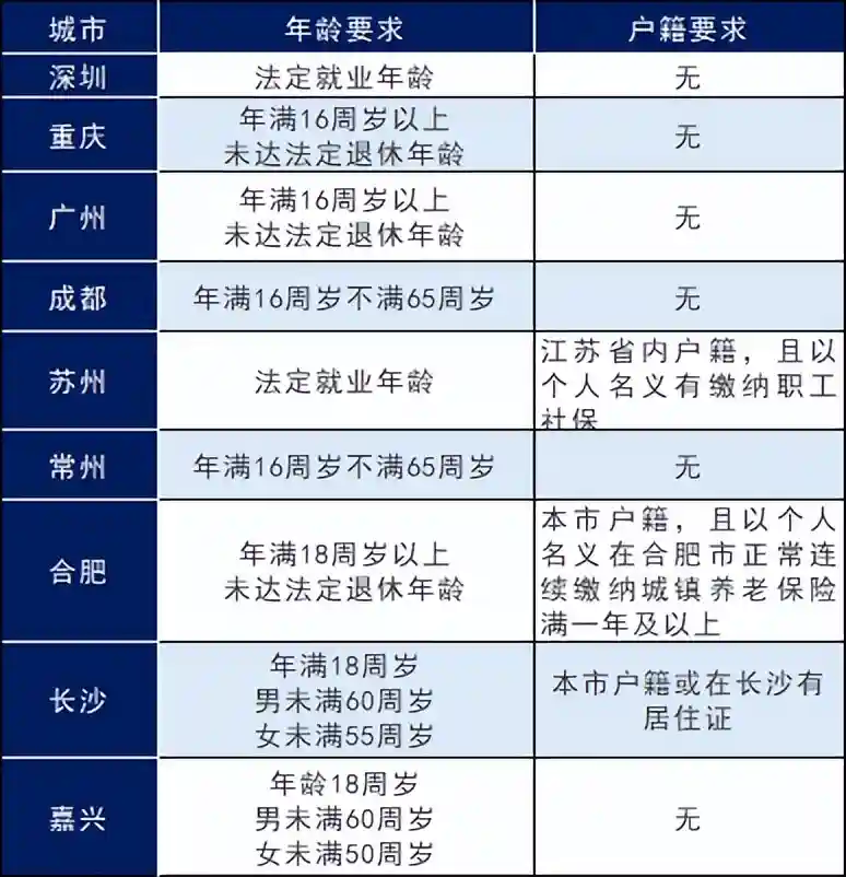(部分城市对灵活就业人员年龄和户籍要求)
