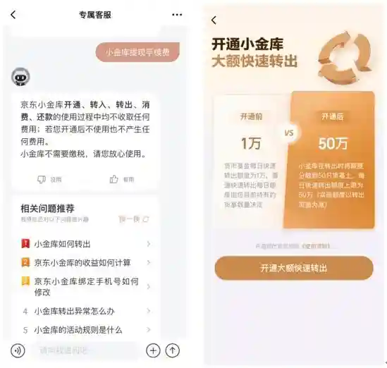 “京东小金库”在业内做到了费率更低,变相为投资人省钱,同时通过开通大额快速转出功能,“京东小金库”也有效解决了货币基金单日提现额度1万元的限制,支持最高50万额度的大额提现。目前,根据监管要求,单人单基金单渠道单日提现额度为1万元。而其他宝宝类理财产品,正常客户当日只能提取1万元。